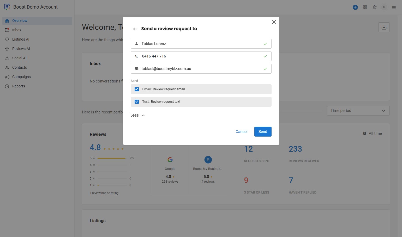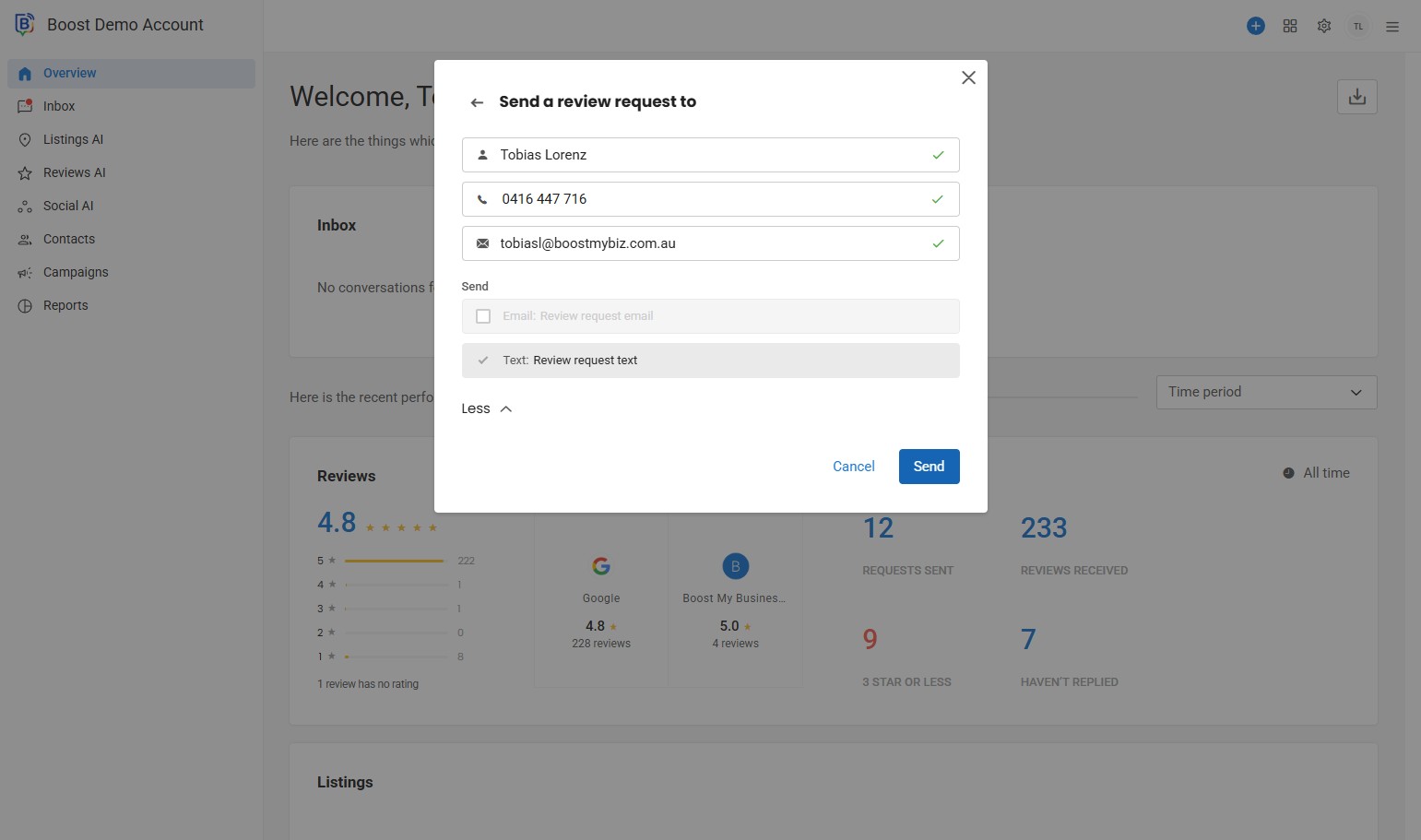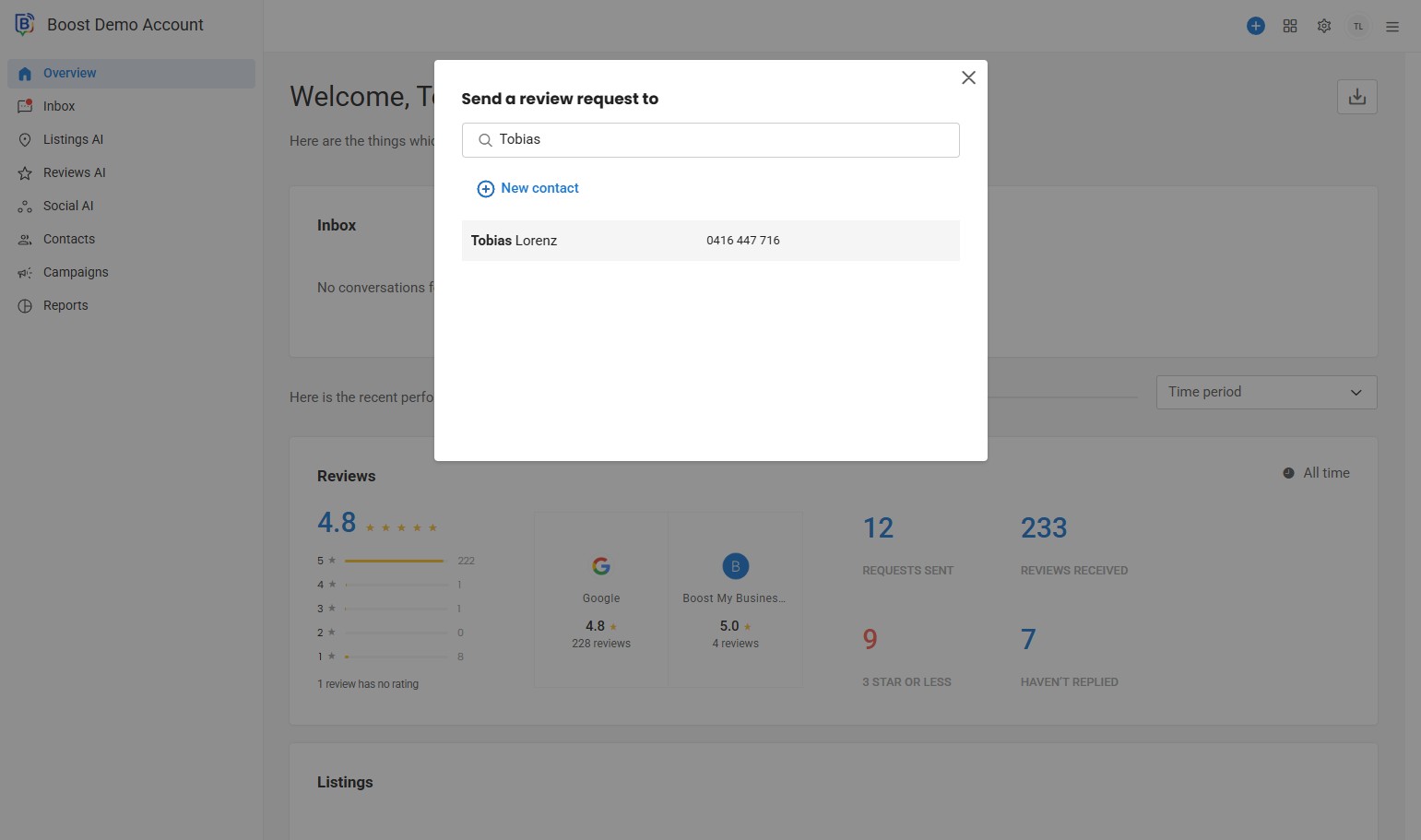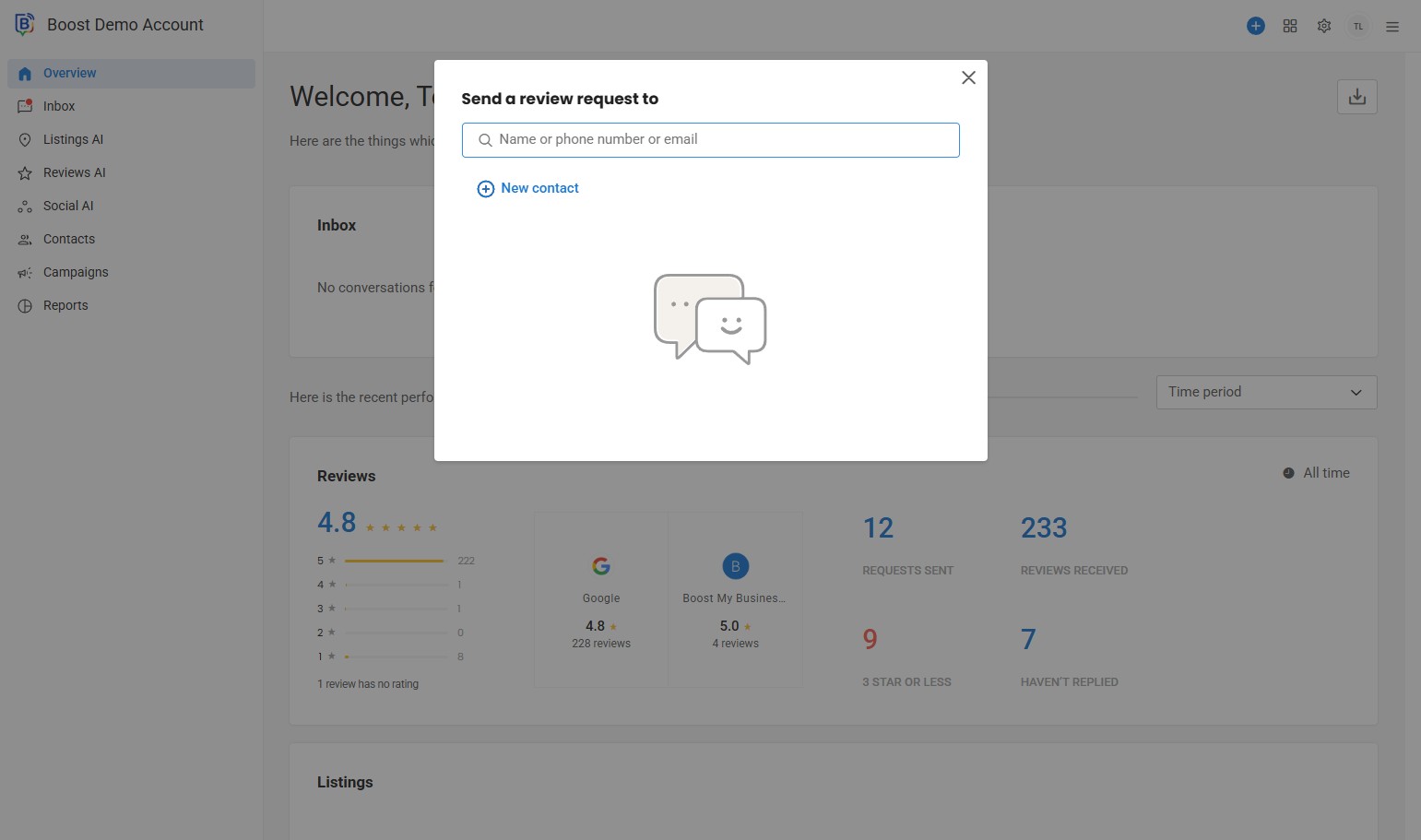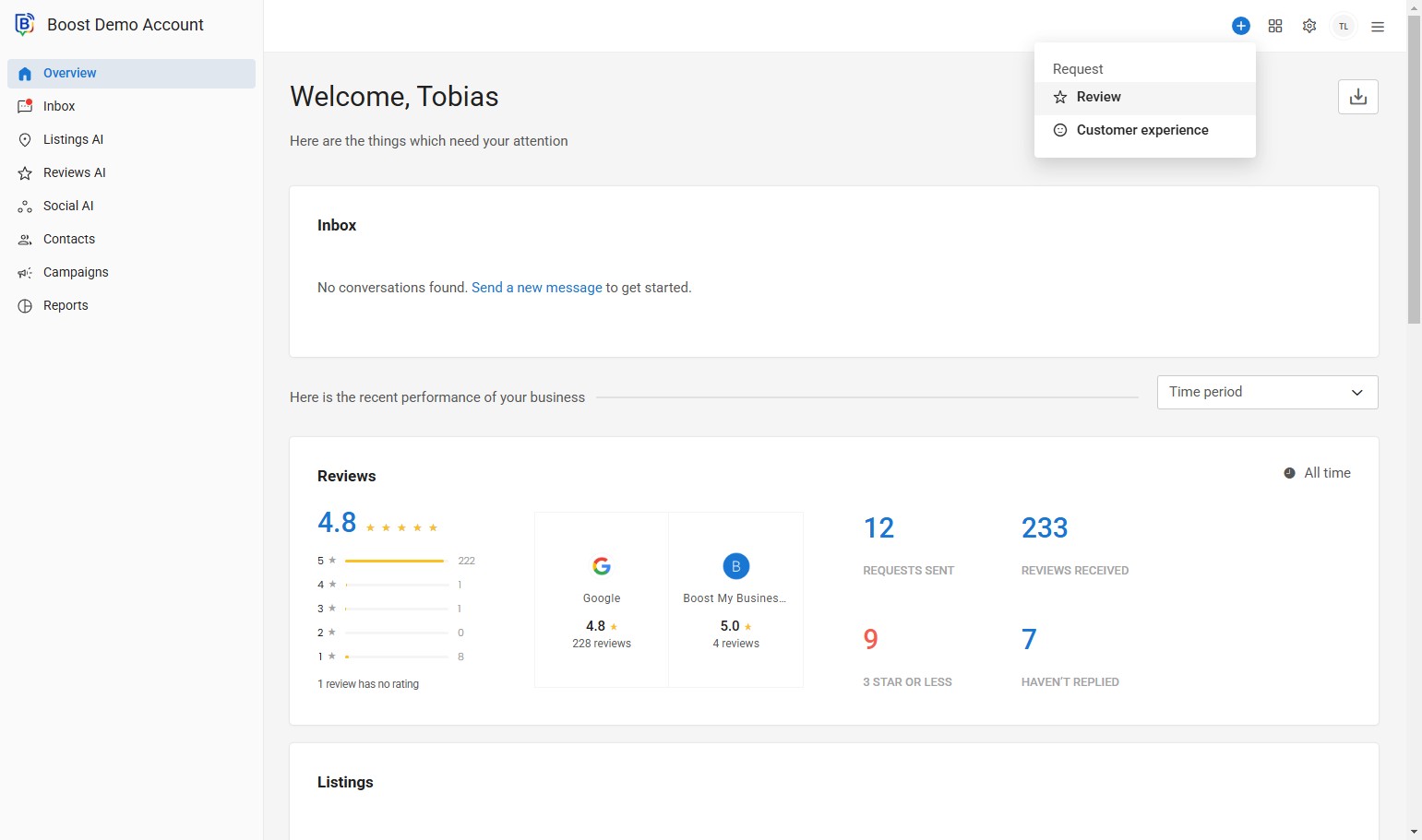02. Click the plus “+” Symbol. This is the Quick Send Button, where you can easily send out Review Requests and more.